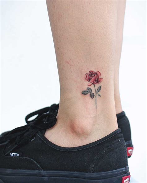 Little rose single needle tattoo on the back of the ankle from www.pinterest.com