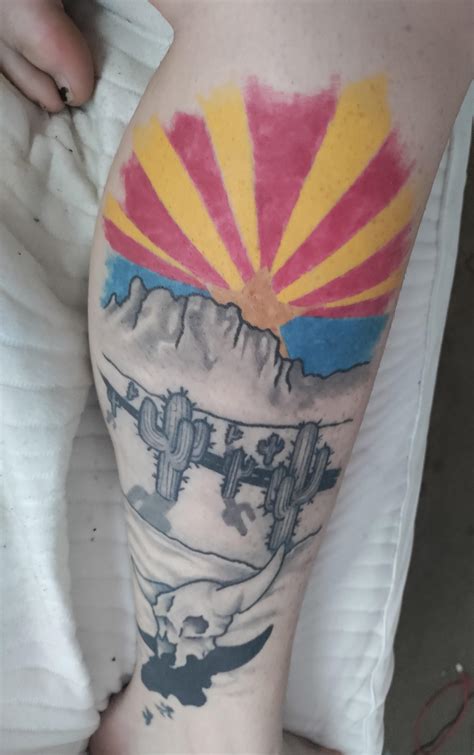 Charles incorporated the outline of arizona state, the arizona state flag and asu’s pitchfork into one asu tattoo. Arizona flag tattoo is just about the image we ascertained on the internet from reliable imagination. American army memorial flag tattoo on forearm. The red and yellow also symbolize arizona 's picturesque landscape.