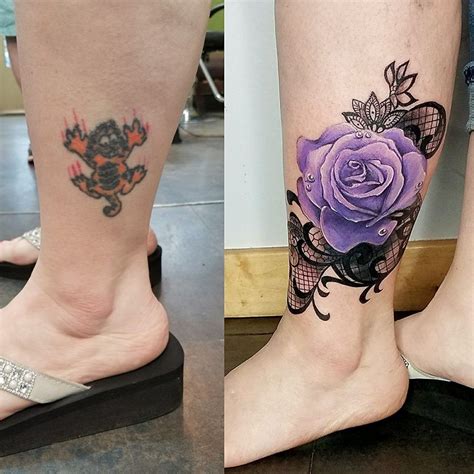 Best tattoo cover up designs and ideas 1. Orange ink lily flowers cover up tattoo on waist. Purple rose ankle cover up tattoo. You can help the artist by giving him an ideal tattoo design of your choice. Full back cover up with angry phoenix bird tattoos.
