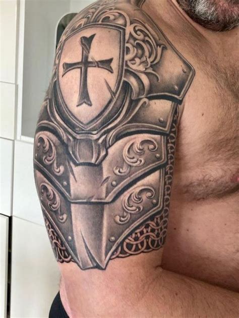 The king assigned this stylized cross as a symbol of courage, and honorary reward. Shield tattoos are a rare sight, and it’s the even rarer breed of man who is drawn to this symbol and likewise able to transcend its ancient origins, emerging as a wholly modern figure. Christian imagery is always going to be strong when we’re looking at.