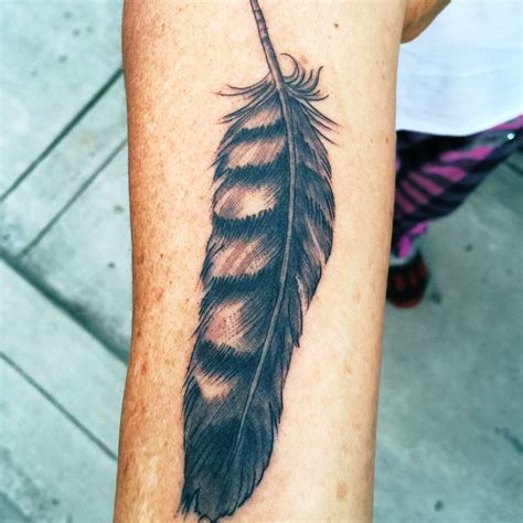There are many feather tattoo designs made in various styles. This tattoo consists of a classic black inked feather with a small quote inked in black in a curvy font. The hawk feather tattoo represents power and beauty, but also signifies a connection to the spiritual world. Super peacock tattoo design on arm. In native american art, the hawk is.