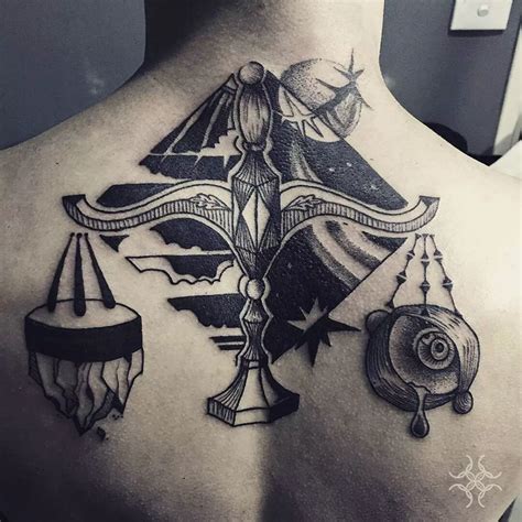 The bold use of black strokes and curved lines used to do this libra scales tattoo lend it an edgy appeal. Look for a stylized version of the libra symbol, in the celticor tribalfashion for example. Your email address will not be published. Sagittarius with libra as bow tattoo design ideas for boys and girls. Libra tattoo designs are tried.