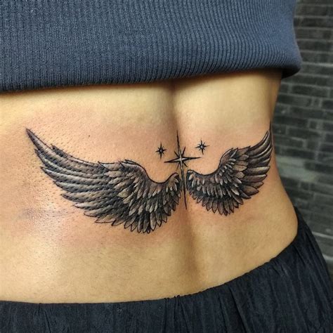 It crosses the lower back with a simple design. The lower back, spinal or lumber area of the body lends itself very well to this type of body art. This minimal black silhouette is one of those wing tattoo ideas that definitely leaves an impact. Here are 23 different wingback tattoos to look at : While traditionally feminine, lower back.