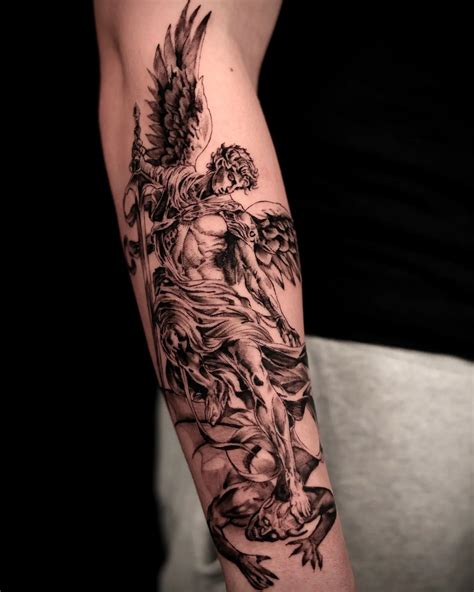 Saint michael tattoo appeals to people who have a warrior mentality. May 16, 2013 by ania. St michael the archangel & evil tattoo on half sleeve. St michael the archangel fighting with evil tattoo on full back for men. It also signifies the victory of good over evil.