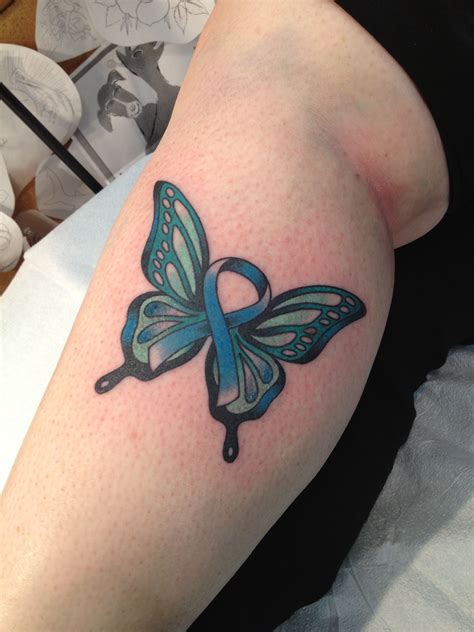 This is another symbolic tattoo of the cancer sign, the crab. The tattoo design was created by me and then drawn/inked free. Completely teal ribbons are symbols of ovarian cancer. Pretty cancer ribbon tattoo awareness ribbons the twin colored ribbons are for diabetes and polycyclic ovarian syndrome and this girl has dedicated them to her mother. The foot is a.