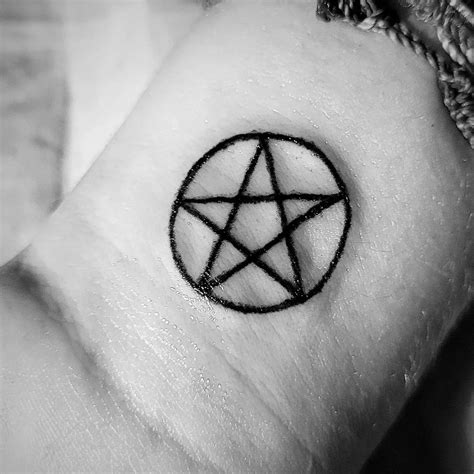 5x5 cm | 2x2 inch The meanings of most common pentagram tattoos are: Inner side of elbow, right after 2nd session / shading done. In conclusion, we can say that a pentagram — an ancient and powerful symbols, symbolizing the superiority, leadership, health and youth. The pentagram or pentacle is possibly the most commonly seen wiccan tattoo.