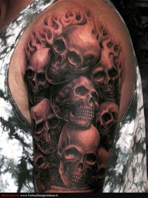 Skull Tattoos Designs For Men, This tattoo design of arm is really perfect for you if want to make a tattoo on your arm. The contrast between the two designs will.