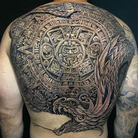 These neck tattoos are typical aztec designs that revolve around the worship of the sun. Stone aztec sun tattoo design, maya sun stone medallion tattoo inspired by ancient aztec sculpture. Full back tattoos are most popular ornamental aztec tattoos as the back offers more space for full display of aztec gods.