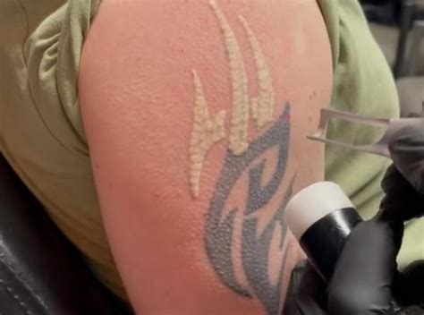 The white frosting is caused by tiny gas bubbles released from the ink as it reacts | this disappears in. Clearlase tattoo removal) a typical appointment lasts for around 30 minutes but the laser. Contact us today to get a free estimate or call us at +44 7599 527611. Before and after photos of a tattoo which was zapped by.