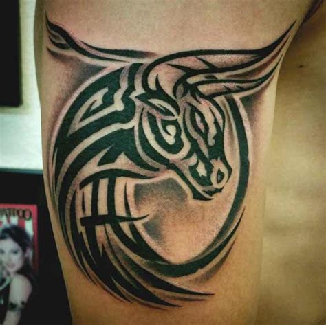 Full bull style taurus tattoo. The symbol for the taurus is the bull and the zodiac element is earth. Taurus tribal tattoo is among the best picture designs for men. Bull taurus buffalo painted tribal ethnic vector; Black ink tribal capricorn zodiac sign tattoo design.